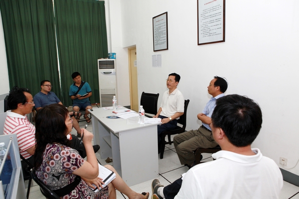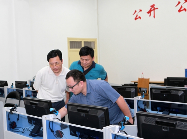 6月29日下午,在备受社会关注的2012年招生录取工作即将拉开序幕之际,校长唐未兵、副校长彭进清在校党政办负责人的陪同下来到学校远程录取现场,检查指导招生录取工作,并亲切慰问招生录取工作人员。唐未兵校长首先查看了录取机房设备,并仔细询问了设备运行情况。招生就业指导处处长杨良奇就今年招生录取工作的形势和特点、人员安排、校内外招生宣传、各批次的生源组织等方面情况向校领导作了简要汇报。副校长彭进清就招生录取工作作了具体部署。
