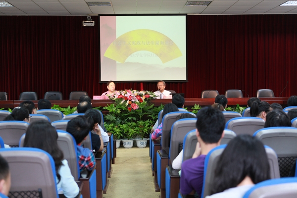 6月5日下午,湖南大学法学院院长杜钢建教授应邀来到我校,作了题为&“社会主义宪政与法治湖南建设&”的讲座。讲座由副校长王明高主持,法学院、科研处负责人及部分法学院师生聆听了讲座。