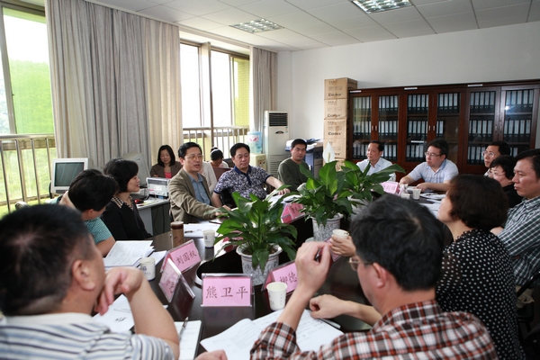 学位办主任李定珍就近期各部门迎检工作进展、材料整理工作情况及目前存在的问题向唐未兵校长一行作了汇报。