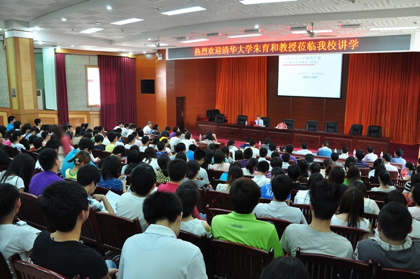 5月17日下午,清华大学现任校长教学顾问、历史系主任朱育和教授在我校图书馆多功能报告厅做了一场题为&“民族复兴与中国共产党——解读中国模式&”的学术报告,副校长彭进清教授及部分老师和同学共同聆听了报告。本次报告由工商管理学院院长黄福华教授主持。