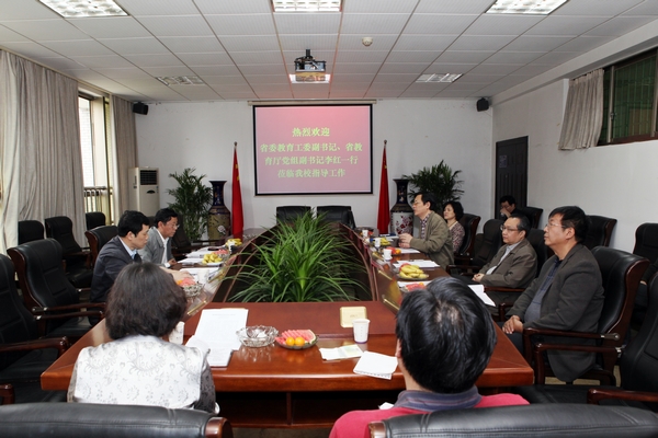 4月25日上午,省教育厅党组副书记、省委教育工委副书记李红,省委教育工委组织部部长陈小奇一行来我校检查指导创先争优工作。校党委书记欧阳峣、校长唐未兵、校党委副书记夏继春、校纪委书记陈丽影等在二办公楼702会议室,向李红副书记一行汇报了我校创先争优活动开展情况。