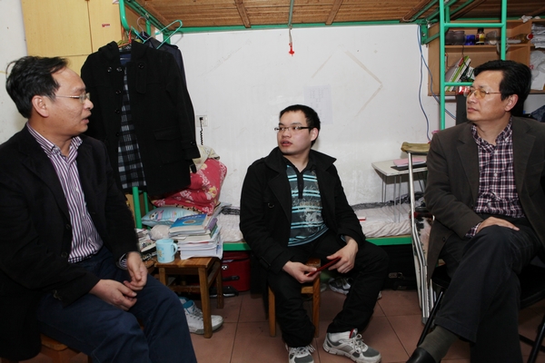 &“你是全校学生学习的榜样,对未来一定要充满信心,继续保持积极乐观的人生态度……&”句句亲切的话语从贤德公寓11栋一楼男生寝室传出。4月5日,一个春意浓浓的下午,校长唐未兵、副校长彭进清在此看望慰问了坚强求学的计电学院学生程双佳。