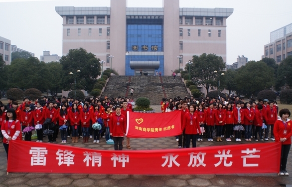 &“学习雷锋好榜样&”主题教育实践活动以&“学习雷锋好榜样、争做文明商院人&”为主题,实现学雷锋活动的时代化和常态化,将 &“全心全意为人民服务&”的雷锋精神发扬光大。此次活动时间将从3月持续到12月份。其主要活动包括,建立校园清洁行动&“一对一&”机制;完善青年志愿者与空巢老人、困难户的长期扶助机制;协调青年志愿者维持食堂&“文明就餐&”秩序;青年志愿者参与开福区植树基地&“植树护绿&”活动;组织&“保护母亲河&”环江清理活动;建立与长沙市第一福利院、长沙市特殊教育学校帮扶活动的长效机制等。