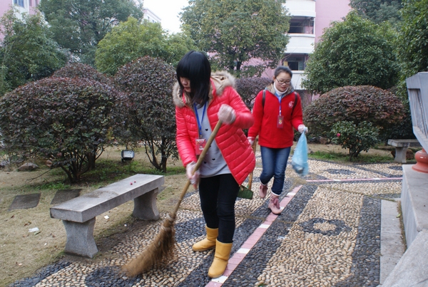开幕式后,志愿者们开展了绿色校园清洁活动,在整个活动中,大家热情高涨、分工明确、认真细致,将&“学习雷锋&”用行动生动地表现出来。(图/蒋雅婷)