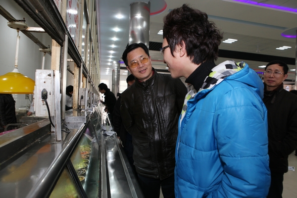 临近中午就餐时间,唐未兵校长走进了学生二食堂察看就餐环境,并对食品卫生等情况进行了解。他与前来就餐的同学亲切交谈,仔细询问他们对饭菜口味、食品价格等方面的意见。唐未兵校长强调,学校后勤部门要进一步加强学生食堂管理,把好进货渠道关,严格操作程序,减少浪费,降低成本,全力确保食堂饭菜质量和价格稳定,让广大师生员工吃得放心、吃得舒心。