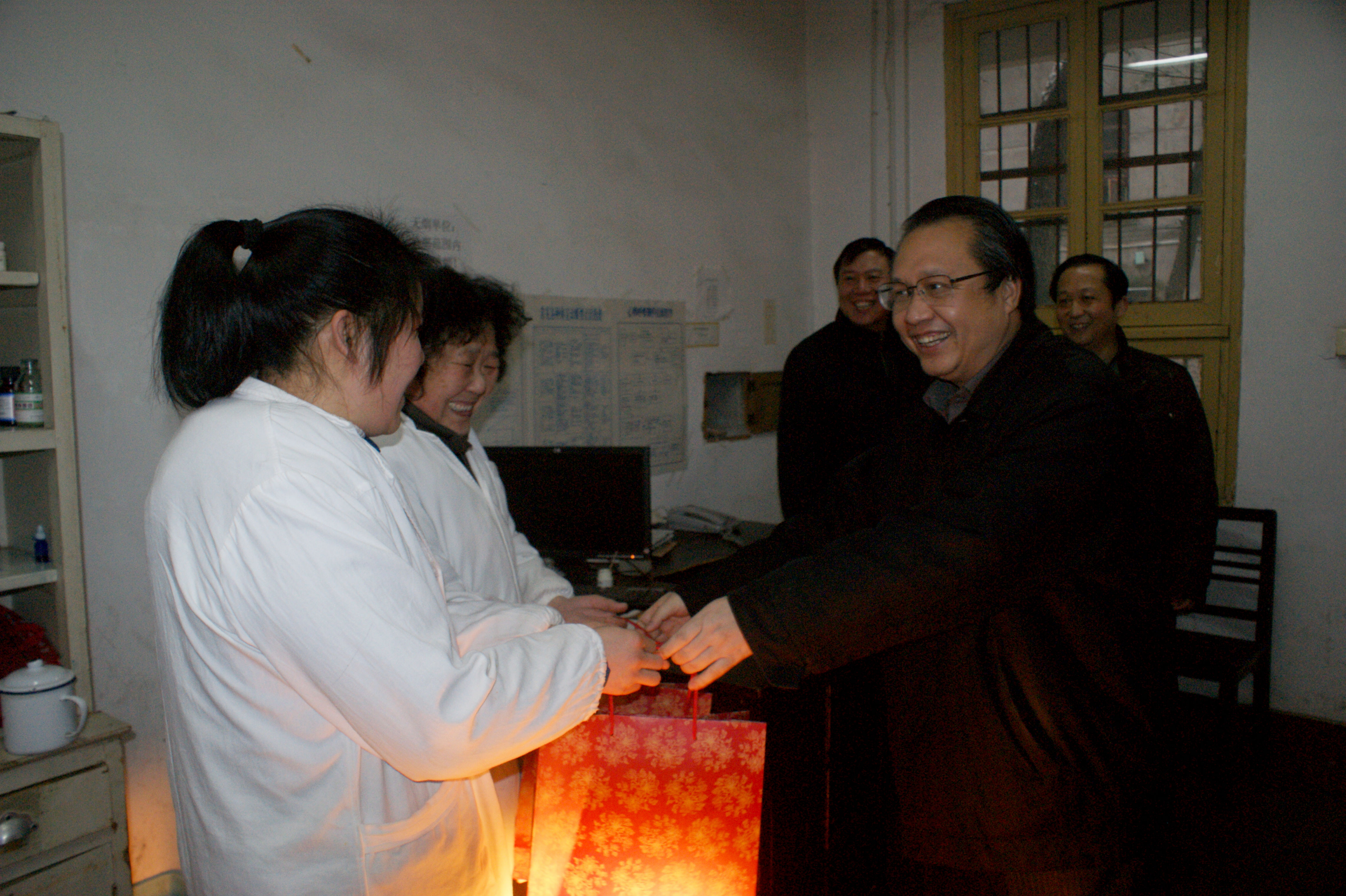 欧阳峣书记一行先后来到校园网服务器机房、各教学楼和办公楼值班室、各学生公寓值班室、各保卫治安门卫和值班室、水电中心、医务室、收发室、食堂、实验楼等处,给春节期间坚守工作第一线的职工送去节日的慰问和新春的祝福。