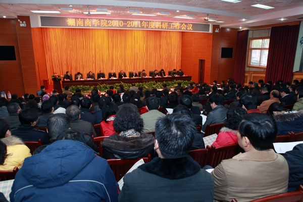 12月27日上午,我校2010-2011年度科研工作会议在图书馆多功能报告厅隆重召开,湖南省教育厅副厅长申纪云、全体校领导及校学术委员会主任柳思维出席会议。
