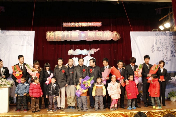 12月23日下午,设计艺术学院在大礼堂举行了《 榜样力量•感恩的心 》2011学年度颁奖典礼。曾伏秋副校长,当代艺术馆馆长、谭国斌艺术奖学金的设立者谭国斌出席了颁奖典礼。学生处、校团委、设计艺术学院、北津学院负责人及相关专业老师参加了此次典礼。