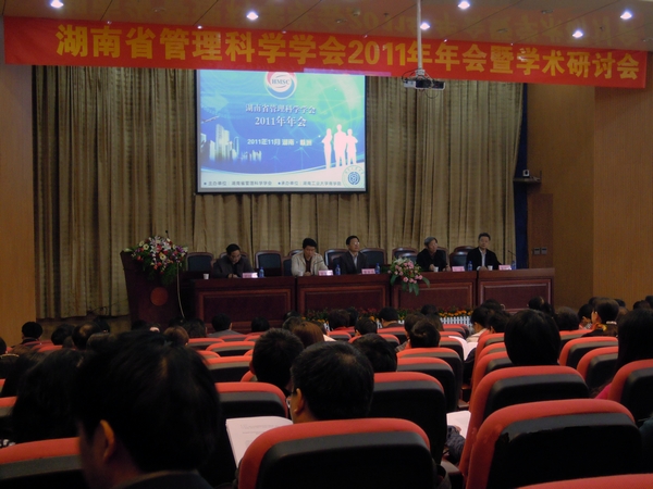 11月26日上午,湖南省管理科学学会2011年年会暨学术研讨会在湖南工业大学举行。省社科联巡视员刘宏,湖南省管理科学学会会长、湖南商学院校长唐未兵教授,湖南商学院副校长李泽华教授等出席会议。来自中南大学、湖南大学、湖南师范大学、湘潭大学、长沙理工大学、湖南科技大学、中南林业科技大学、吉首大学等高等院校的专家学者近100人参加会议。