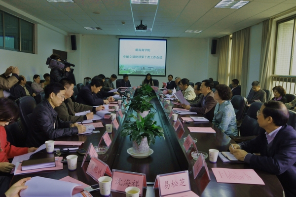 11月17日上午,我校第十次申硕立项建设工作会议在二办公楼401会议室召开。校领导欧阳峣、唐未兵、王明高及校学术委员会主任柳思维教授出席会议,相关职能部门负责人、各二级学院负责人参加会议。会议由副校长王明高主持。