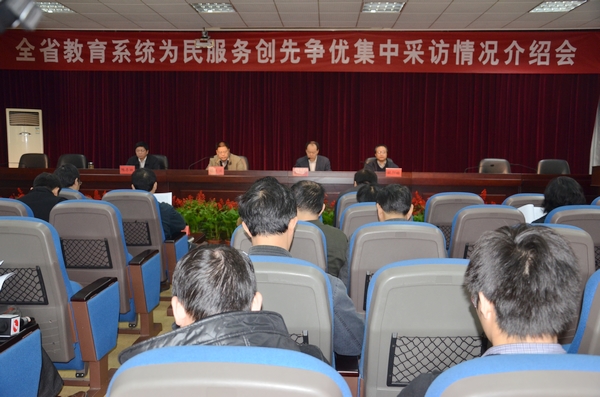 11月10日上午,全省教育系统&“为民创先争优&”集中采访活动走进我校,省内重要报纸、电视、网络媒体悉数到场,就此内容进行集中采访报道。