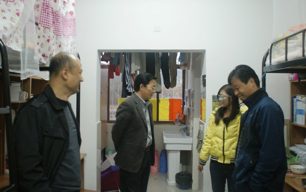 在学生宿舍知止苑三栋,唐未兵校长一行走进新生寝室,与新生亲切交谈,询问他们大学学习规划、寝室生活、业余活动等情况,同时也勉励大一新生勤奋学习,自立自强。
