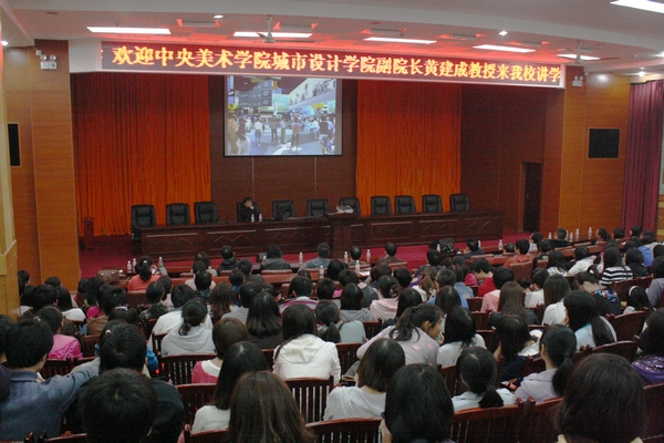11月2日晚,中央美术学院城市学院副院长、2010年上海世博会中国国家馆空间展示总设计师黄建成教授应邀来我校作了题为&“艺术空间与社会空间&”的学术讲座。杨虹副校长出席该次讲座并为黄建成教授颁发我校客座教授证书,本次讲座由设计艺术学院院长李立芳教授主持。