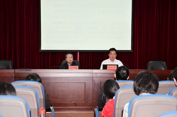 10月14日上午,中国社会科学院经济所研究员、政治经济学研究室主任胡家勇应邀来到我校,就&“如何转变我国经济发展方式&”作了专题学术讲座。我校党委书记欧阳峣出席并主持讲座。