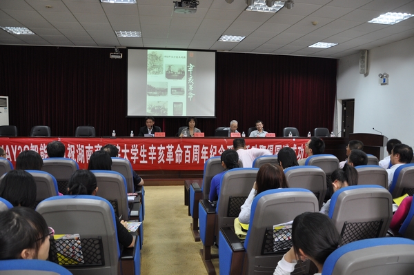 饶教授主要围绕&“湘籍志士与辛亥革命&”的中心展开辛亥革命史的解读,并对&“陆军总长&”黄兴、&“护国将军&”蔡锷、&“开国元勋&”蒋翊武等众多湘籍志士于辛亥革命期间在舆论宣传、聚集人才、组织群众发动武装等方面的作用给予高度评价。饶怀民教授强调,发扬辛亥革命精神对于走中国特色社会主义道路具有重大的现实意义。黎教授则对&“辛亥革命与中国百年历史选择&”的主题做了精彩的解读。他认为,一切历史都是当代史,总结历史,借鉴历史,从历史中甄别中国历史发展趋势,对同学们未来人生道路的选择都具有重要意义。