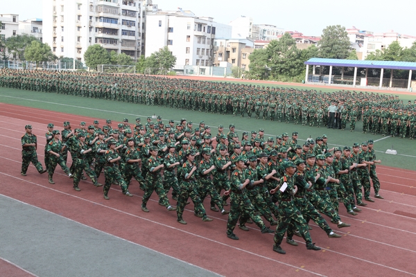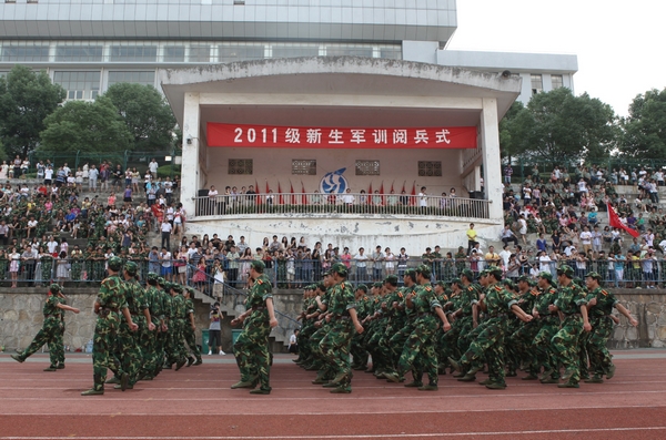 历经了烈日的考验,历经了风雨的洗礼,2011级新生喊着响亮的口号,迈着整齐的步伐依次从主席台前走过,接受检阅。9月14日下午,我校2011级新生军训阅兵式暨总结表彰大会在体育场隆重举行。校长唐未兵,副校长杨虹、曾伏秋出席了阅兵式,国防科技大学指挥军官基础教育学院陈跃能大校、欧德稳大校、邓崇顺少校,武警湖南省消防总队培训基地刘林中校应邀参加了大会。参加大会的还有我校各职能部门负责人及各二级学院负责人。