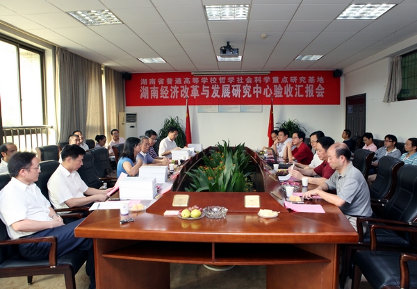 9月14日,省教育厅组织专家对我校湖南省普通高等学校哲学社会科学重点研究基地——湖南经济改革与发展研究中心进行了验收评审。通过听取汇报、实地考察、查阅材料与质询问题,专家组经讨论一致认为,该基地圆满完成了建设任务书的各项任务,同意通过验收。