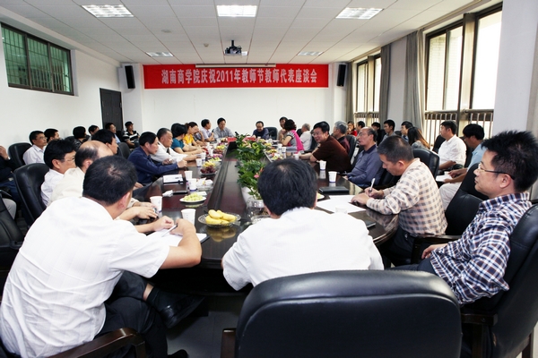9月9日下午,校领导欧阳峣、唐未兵、夏继春、彭进清、杨虹、廖明星,校学术委员会主任柳思维教授与教师代表们欢聚一堂共同庆祝第27个教师节。座谈会由校党委副书记夏继春主持。