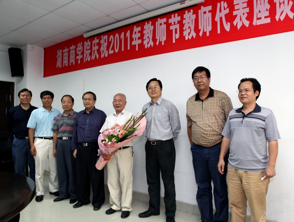 在二办公楼401会议室,校领导为我校学术委员会主任柳思维教授送上节日的祝福,对柳教授严谨的治学态度、高尚的师德和深厚的学术造诣给予了高度评价。