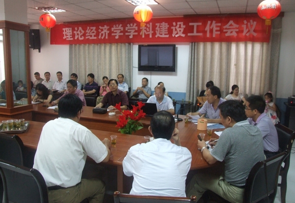 经贸学院党总支书记彭炳忠总结了理论经济学申硕学科中期检查工作。刘乐山副院长总结了&“十一五&”省级重点建设学科——政治经济学的验收工作、部署了&“十二五&”省级重点(建设)学科的申报工作,并对省重点研究基地——湖南经济与改革发展研究中心迎接验收工作作了说明。刘天祥院长对&“十二五&” 校级重点学科建设工作做了动员。职能处室的主要负责人和部分学科组成员结合本部门或自己的实际情况,就理论经济学如何更好地进行学科建设谈了自己的看法。
