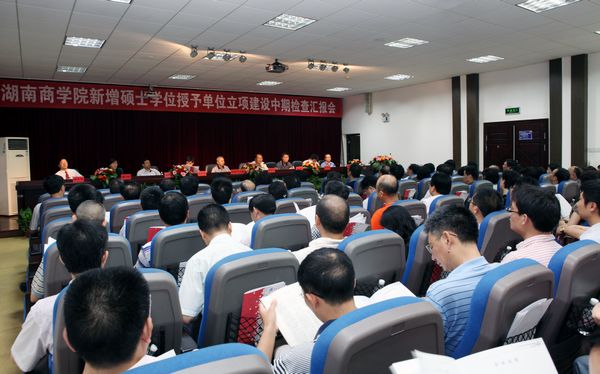 7月20日上午,新增硕士学位授予单位立项建设中期检查汇报会在二办公楼301会议室举行。会议由省教育厅副厅长、专家组组长申纪云主持。校党委书记欧阳峣在会上致欢迎辞。他表示,新增硕士学位授予单位立项建设中期检查既是对我校立项建设工作的一次检阅,也是一次全面诊断,衷心希望专家组提出宝贵意见。湖南师范大学校长、专家组副组长刘湘溶教授在会上发表讲话,他指出,湖南商学院近年来发展势头强劲,成绩显著,此次新增硕士学位授予单位立项建设中期检查,一是要对学校新增硕士学位立项建设以来取得的成绩予以充分的肯定和发掘,二是要找出存在的问题和不足,在下一步的工作中予以改进。专家组将在省教育厅、学位办的领导下,认真细致地完成此次检查工作。校长唐未兵在会上从立项建设的缘起、立项建设的过程、立项建设的举措、立项建设的成效、立项建设的展望等六个方面向专家组全面汇报了我校新增硕士学位授予单位立项建设相关工作。