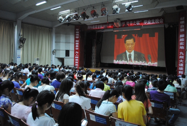 上午10点,校领导欧阳峣、唐未兵、夏继春、李泽华、彭进清、杨虹、王明高、曾伏秋、陈丽影、廖明星、刘国权以及各职能部门负责人,在二办公楼702会议室准时收看了&“庆祝中国共产党成立90周年大会&”电视直播。与此同时,来自各个学院的数千名学生分别在大礼堂、一食堂、二食堂、三食堂集中收听收看了大会实况。此外,许多学生还通过寝室网络直播收看庆祝大会。法学院09级学生王凯说:&“听了总书记回顾中国共产党九十年的风雨历程和中国共产党带领中国人民取得的辉煌成就,让我深切地感受到我们今天的幸福来之不易。作为当代大学生,我们要铭记党恩,珍惜大学生活,为祖国的美好明天不懈奋斗。&”