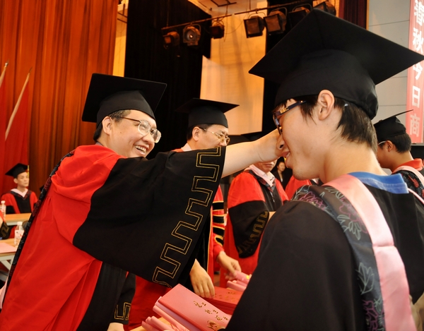 在激昂的校歌声中,2011届毕业典礼暨学位授予仪式落下帷幕。(文/代火霞 范永发 图/郁剑 陈璐明 徐欢)