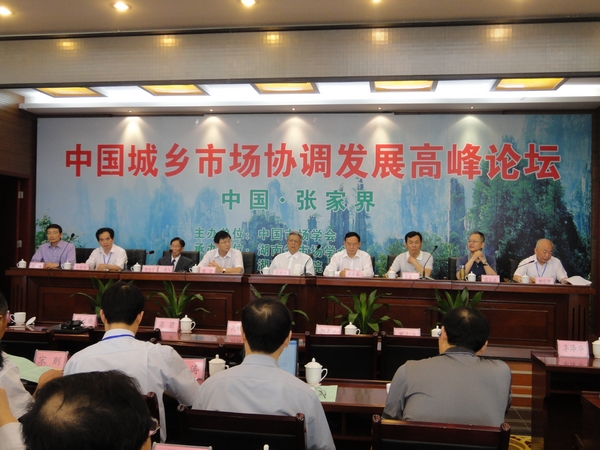 6月11-12日,由中国市场学会主办,湖南商学院、湖南省市场学会、张家界市现代农业研究会及《经济地理》杂志社共同承办的2011年中国城乡市场协调发展高峰论坛在张家界市顺利召开。中国市场学会理事长、国家粮食储备局原局长高铁生,湖南省社科联党组书记周发源教授,湖南商学院副校长李泽华教授,湖南省市场学会会长柳思维教授,张家界市副市长向佐谊、副市长梁碧以及来至美国弗吉尼亚大学、中国社科院、中国人民大学、东北财经大学、上海财经大学、上海大学、中南财经政法大学、北京工商大学、兰州商学院、湖南商学院及省内的中南大学、吉首大学、长沙理工大学等30多所院校的近60名代表参加了此次论坛活动。