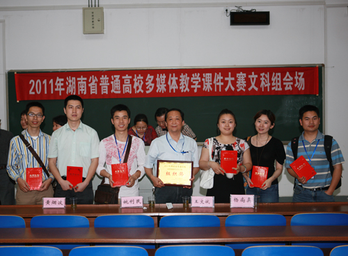 由湖南省高等教育学会主办、教育技术专业委员会承办的2011年湖南省普通高校多媒体教育软件大赛已圆满结束。大赛坚持&“公平、公正、公开、科学、规范&”的原则,采用网评与集中会审结合的方式确定入围作品,并于5月28日在中南大学现场决赛产生一、二等奖。我校《电子商务网站建设与运营》(赵珏、张胜、唐新玉、余绍黔、朱玉梅)、《MAYA基础动画》(陈旺、于肖飞、谢玺瀛、张胜、廖建民)、《动画技法网络教学课程》(廖建民、张淑兰、廖静、邓姣华、陈旺、于肖飞)作品荣获一等奖。