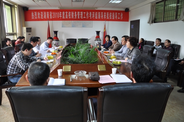 4月20日下午,全省高校2010年度财务管理工作考评组来我校对财务工作进行考评,我校在二办公楼702会议室召开了工作汇报会。校领导唐未兵、李泽华、杨虹、陈丽影出席了会议,相关职能部门负责人参加了汇报会。会议由副校长杨虹主持。