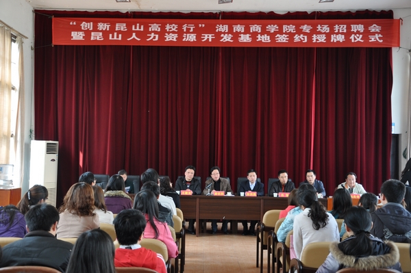 接着,湖南商学院和昆山人力资源市场管委会双方签署了就业合作意向协议书,并举行了湖南商学院昆山人力资源开发基地授牌仪式。专业招聘会在同学们热烈掌声中拉开了帷幕。