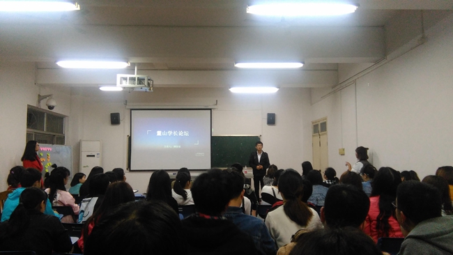 论坛过程中,柳佳福以自己的经历为同学们讲述考取公务员的一些技巧与方法。他首先以公务员的定义、考试及报名把大家带入了公务员招考的程序,而后根据公务员考试笔试涉及的知识层面分别予以详细讲解,以举例的形式展示了公务员考试笔试的题目类型及解题方法,以自己的亲身经历生动地阐释了公务员考试面试的注意事项及技巧。同时,他根据自己的经历提出建议,并给予真诚的祝愿。提问环节中,柳佳福对同学们的提问给予了耐心解答,并表示在这个考试中人人平等。