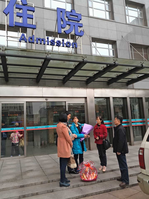 此次爱心行动得到了学校关工委的大力支持,3月17日下午,在我院党总支副书记郭一红等师生代表的陪同下,关工委蒋正甫副主任、桂建兵老师代表校关工委前往医院探望张珍同学,送去一万元救助基金,学生代表为正在动手术的张珍同学送去了鲜花和果篮等慰问品。期间,关工委的老师为其父母详细介绍了保险理赔应该准备的各种材料,表示学校愿意尽最大努力帮助张珍同学。