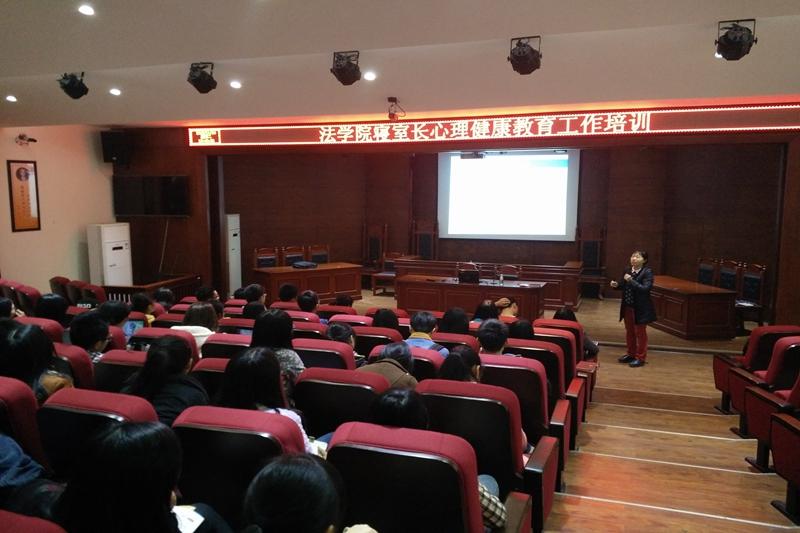 11月10日,法学院在乐知楼F101模拟法庭举行寝室长心理健康教育工作培训大会,法学院学工办主任袁露、分团委书记尹琴担任培训老师,法学院全体寝室长、宿管委员及相关学生干部参加了此次培训。
