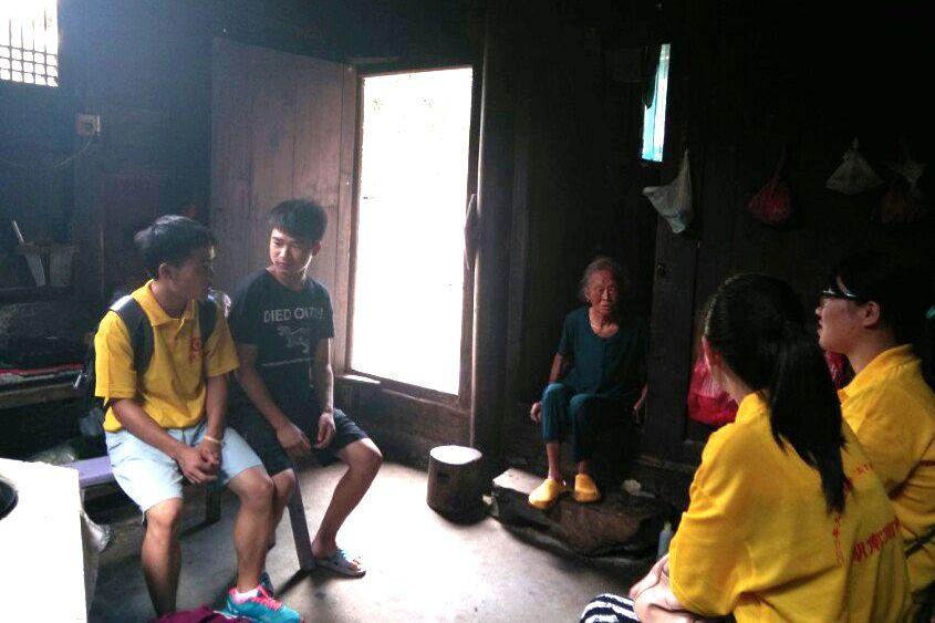 当地的村长热情的接待了我们,在他的带领下我们首先来到了一位老党员家里,我们进去的时候老奶奶刚好准备睡午觉了,但看到了我们的到来后赶紧把桌子擦干净让我们过去坐,这让我们非常感动,同时心里也有惭愧:老人家因为我们的到来午觉都没睡。我们和奶奶开心地聊起了家常,了解到他家里就一个儿子,就住在她的隔壁,其他女儿都嫁到外村或者外地去了,老人家每天都自己做家务活,但身体已经负担不起繁重的劳务活了,因为老奶奶说到她有心脏病,但因为家庭条件问题,加上奶奶晕车,交通不便,一直没有去诊治,奶奶说起这些都是带着微笑的,但我们心里都是酸酸的。