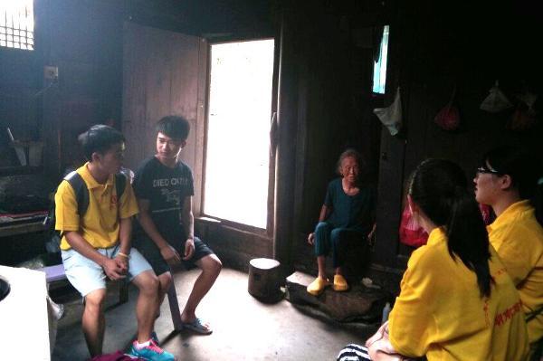 在告别了奶奶之后我们来到了旁边的另一户人家,好远我们就能看见这户人家门前站了一老一少俩人。待我们走近,才发现也是一位老奶奶,她非常热情,大老远就在盼着我们了。进去之后,奶奶非常高兴,连忙让她的孙子去搬了两条凳子过来让我们坐。在交谈中我们得知老人家的儿媳妇已经因为癌症去世了,而她的儿子的腿也落下了残疾,说到这里的时候老人家眼眶里的眼泪直往下掉,我们都感到非常的难过,但当奶奶说起她的孙子时,眼角的笑容就没有停过,他的孙子今年读高二了,成绩非常好,在全年级能排到前十,这让我们都替他高兴,因为这家人的希望都在他孙子身上。奶奶在和我们交谈的时候,他的孙子一直在一旁静静的听着,眉头不时皱起,我知道这是他内心情感的一种流露,一个孩子遭遇了这种家庭变故后还能如此坚强,这让我非常佩服,当我们和奶奶的孙子交谈时,他的言语中流露出的是一种阳光自信的气息,我们都在心中默默地为他们一家祝福,希望他们能尽快地好起来。