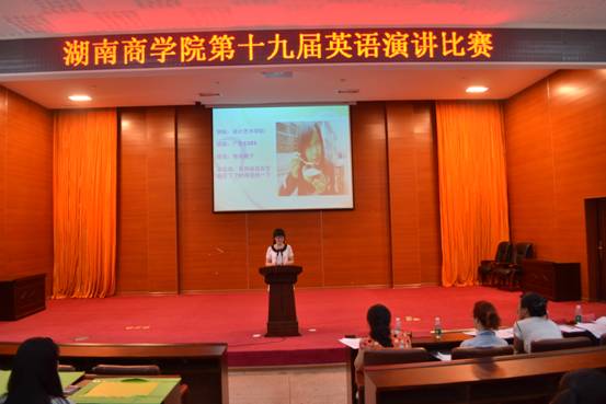 6月4日下午,由湖南商学院教务处、学工处主办,外国语学院承办的湖南商学院第19届大学生英语演讲比赛决赛在图书馆多功能报告厅举行,外国语学院副院长文兰芳老师,党总支副书记李蓓霖老师亲临现场。25名决赛选手都是各学院选拔出的英语演讲佼佼者。决赛过程中选手们激情澎湃、观众们热情高涨,比赛体现了我校学生英语实际应用能力的最高水平。最终来自外国语学院的肖翔获得了专业组特别奖, 财金学院的胡丽城和经贸学院的鲁晓维以优异的表现获得了非专业组一等奖。(郑荔丹)
