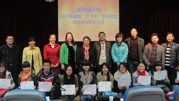 11月8日下午,我校2012年暑期&“三下乡&”社会实践活动总结表彰大会在二办公楼301会议室举行。校团委、学生工作处等部门领导老师,各学院党总支副书记、分团委书记,以及参与今年暑期&“三下乡&”社会实践的团队负责人,部分班长、团支书代表参加了会议。会议由校团委副书记曾晶主持。