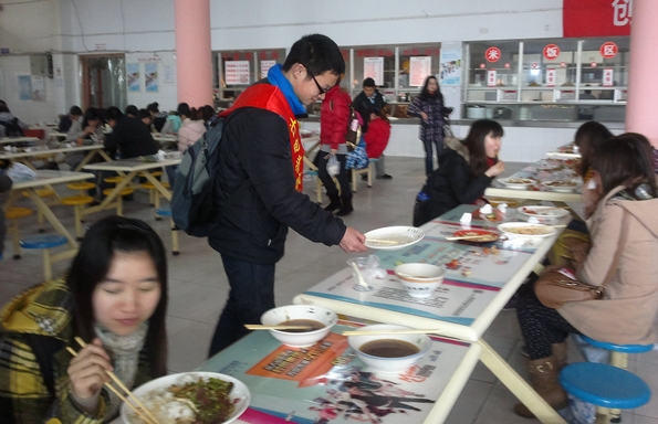 计电学院志愿者服务队主要负责维护就餐排队秩序,确保食堂师生就餐文明有序,不出现拥挤扎推,协助食堂清洁人员打扫卫生,并防止食堂出现偷盗等意外事故。通过志愿者们的热心服务,学校食堂文明有序的就餐秩序得到了进一步体现,卫生情况得到进一步改善,受到广大师生的肯定和好评。(雷瑶 曾璐) 责编:陈璐明