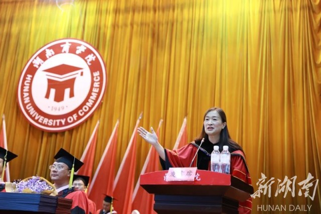 新湖南客户端6月19日讯(记者 余蓉)近日,湖南商学院举行2017届毕业生典礼,校长陈晓红在致辞中希望同学们做一个精神高贵的人,一个把勤奋、文明和优秀当作习惯的人,一个有格局、有温度、懂生活的人,并引用经典爱国歌曲《祖国不会忘记》激励毕业生奉献自己、服务祖国,引发强烈共鸣。以下为讲话节选:
