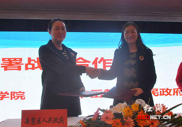 当天上午,湖南商学院与岳麓区签署了战略合作协议,从共建创新创业平台、共建创新创业实践基地、共建“湘商文化园”、共建现代服务业发展智库、共同举办“双创”主题活动、有序推进优秀人才互动交流、促进科研成果转化、共建文明校园和社区8个方面开放了合作平台。未来,双方将充分发挥区校双方优势,合作共建创客中心、湘商众创空间、万创中国湘江运营中心等创新创业平台。湖南商学院还将在岳麓科技产业园产业楼宇内规划2000~5000平方米办公场地作为“湖南商学院创新创业基地”,在园区范围内为“湘商创业园”规划200亩以上土地,作为承接湖南商学院师生及校友规模化企业入驻基地,经审核入园企业将享受岳麓区创新创业等产业优惠政策。当天还为“万创中国·湘江中心”揭牌。