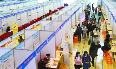 图片新闻:11月27日,求职学子们在招聘会现场找寻合适自己的岗位。当天,湖南商学院举办应届毕业生专场招聘会,50多家大型企业入场招聘,吸引了近5000名学子前来求职。今年,该校共在校内举办专场招聘会13场,2000多名学子达成就业意向。湖南日报记者 赵持 余蓉