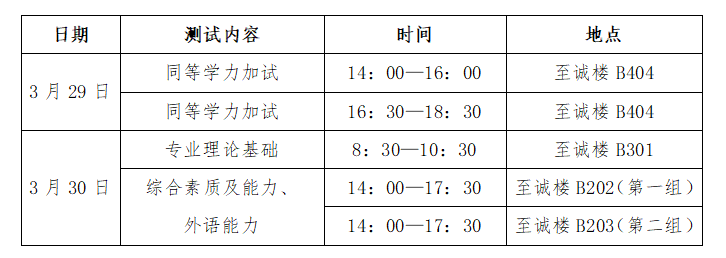 同等学力加试与专业基础理论测试请于开始前半小时到达相应教室;
