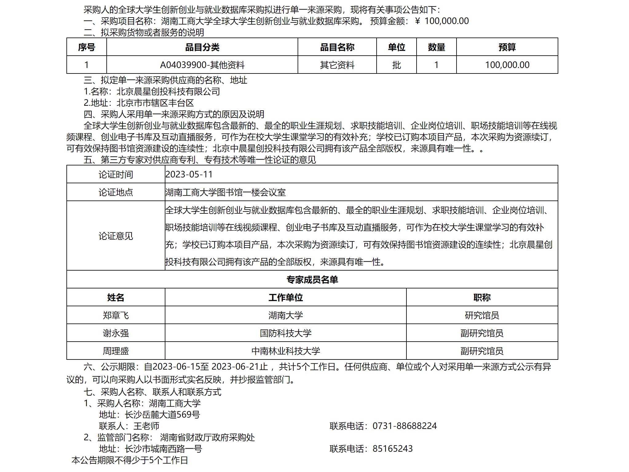 湖南工商大学 全球大学生创新创业与就业数据库采购 单一来源采购公示