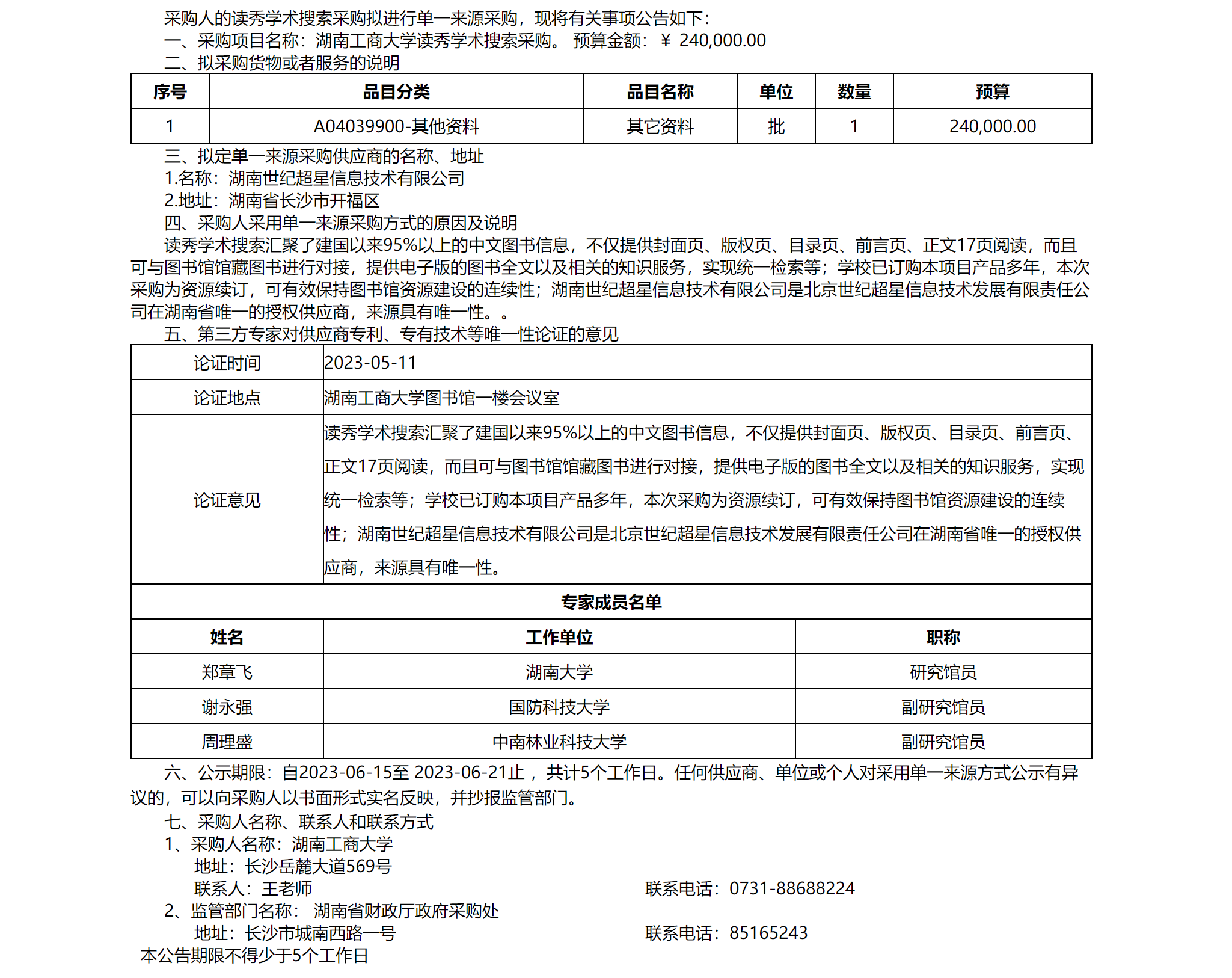 湖南工商大学 读秀学术搜索采购 单一来源采购公示