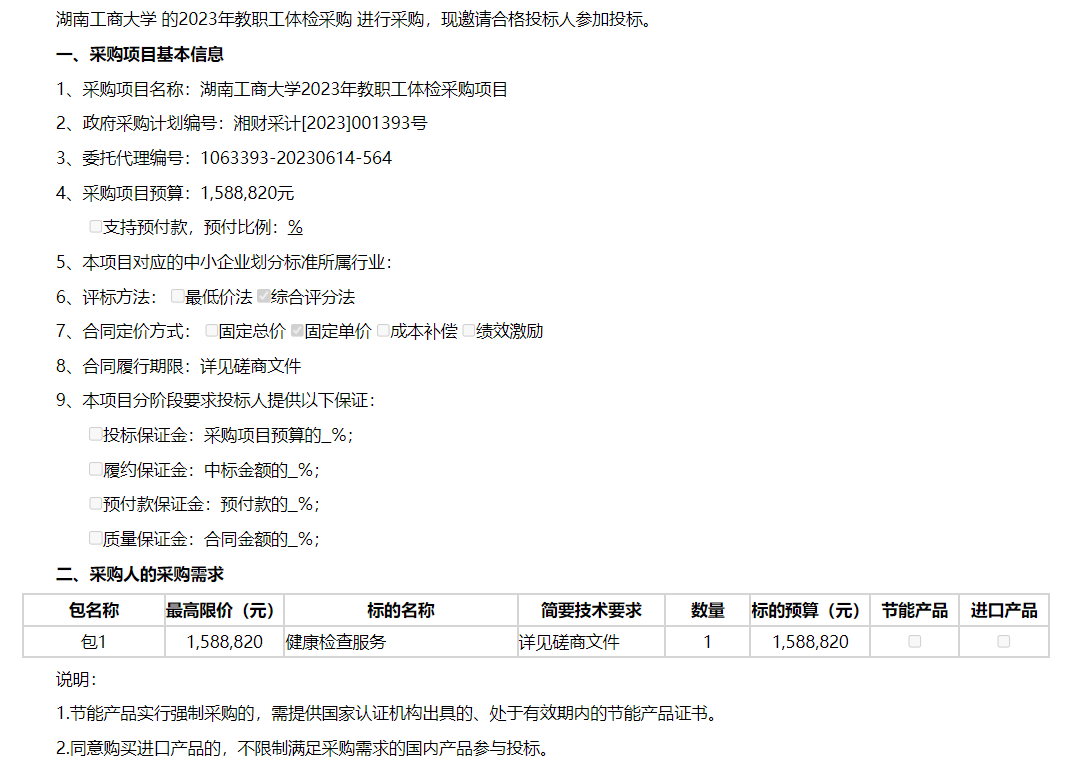 湖南工商大学2023年教职工体检采购 项目 竞争性磋商邀请公告