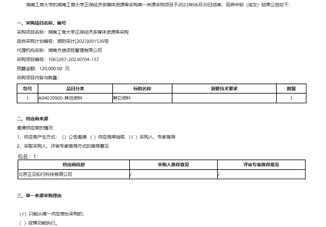 正保经济多媒体资源库采购中标(成交)公告