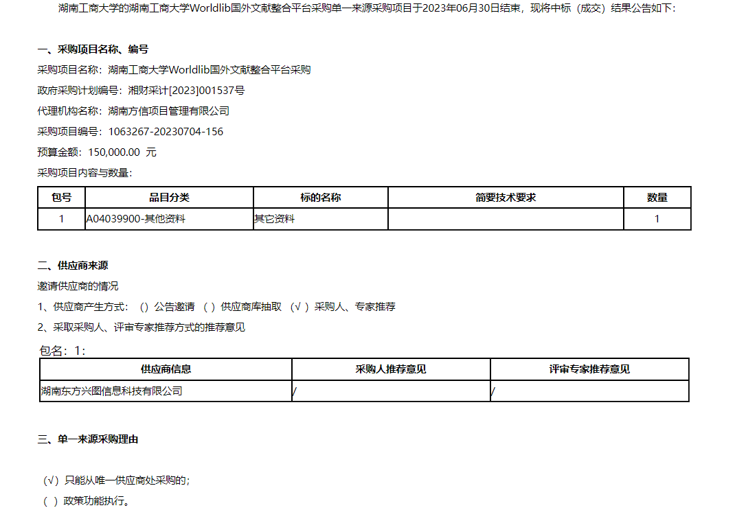 Worldlib国外文献整合平台采购中标(成交)公告