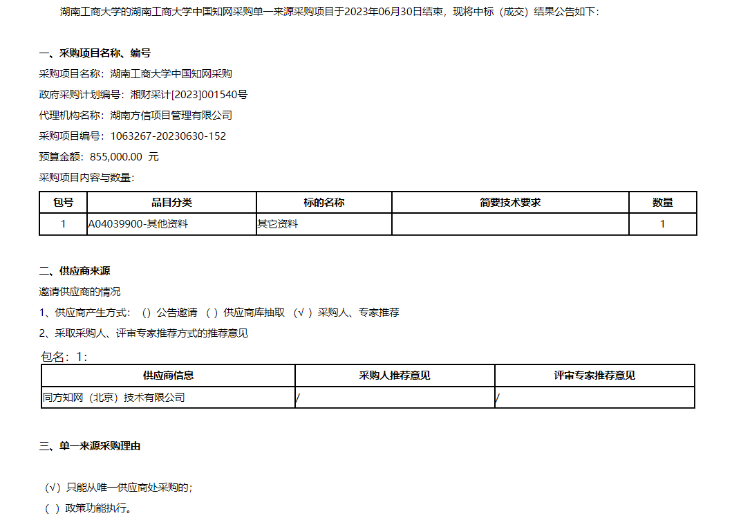 中国知网采购中标(成交)公告
