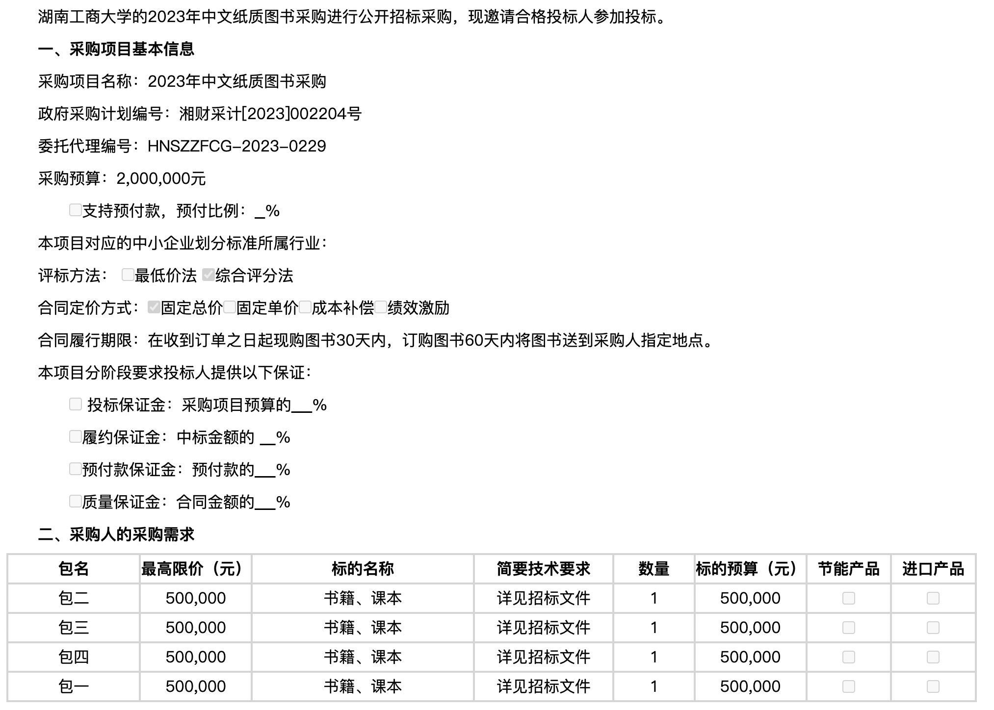 湖南工商大学2023年中文纸质图书采购项目公开招标公告